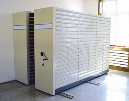 底圖柜不同于檔案密集柜,采用的是抽屜式結(jié)構(gòu),每列擁有百余個抽屜。特殊的結(jié)構(gòu)也決定了它的作用只能用來存放設計圖、書畫、數(shù)據(jù)表等文件。因容量大、利用空間、使用方便。