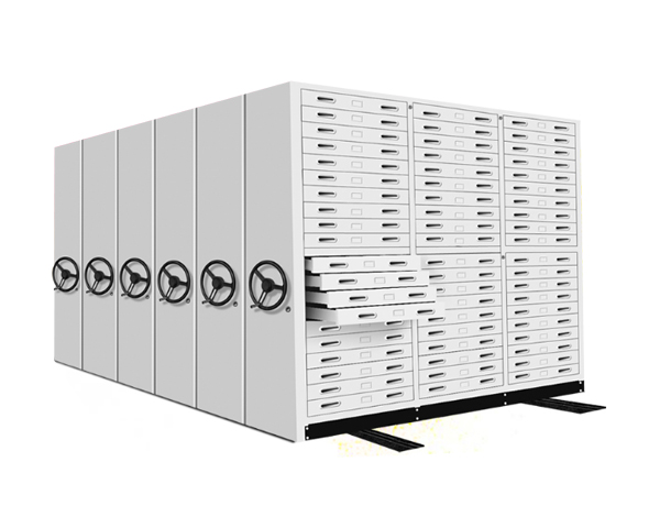 底圖架不同于檔案密集架,采用的是抽屜式結(jié)構(gòu),每列擁有百余個(gè)抽屜。特殊的結(jié)構(gòu)也決定了它的作用只能用來存放設(shè)計(jì)圖、書畫、數(shù)據(jù)表等文件。因容量大、利用空間、使用方便。
